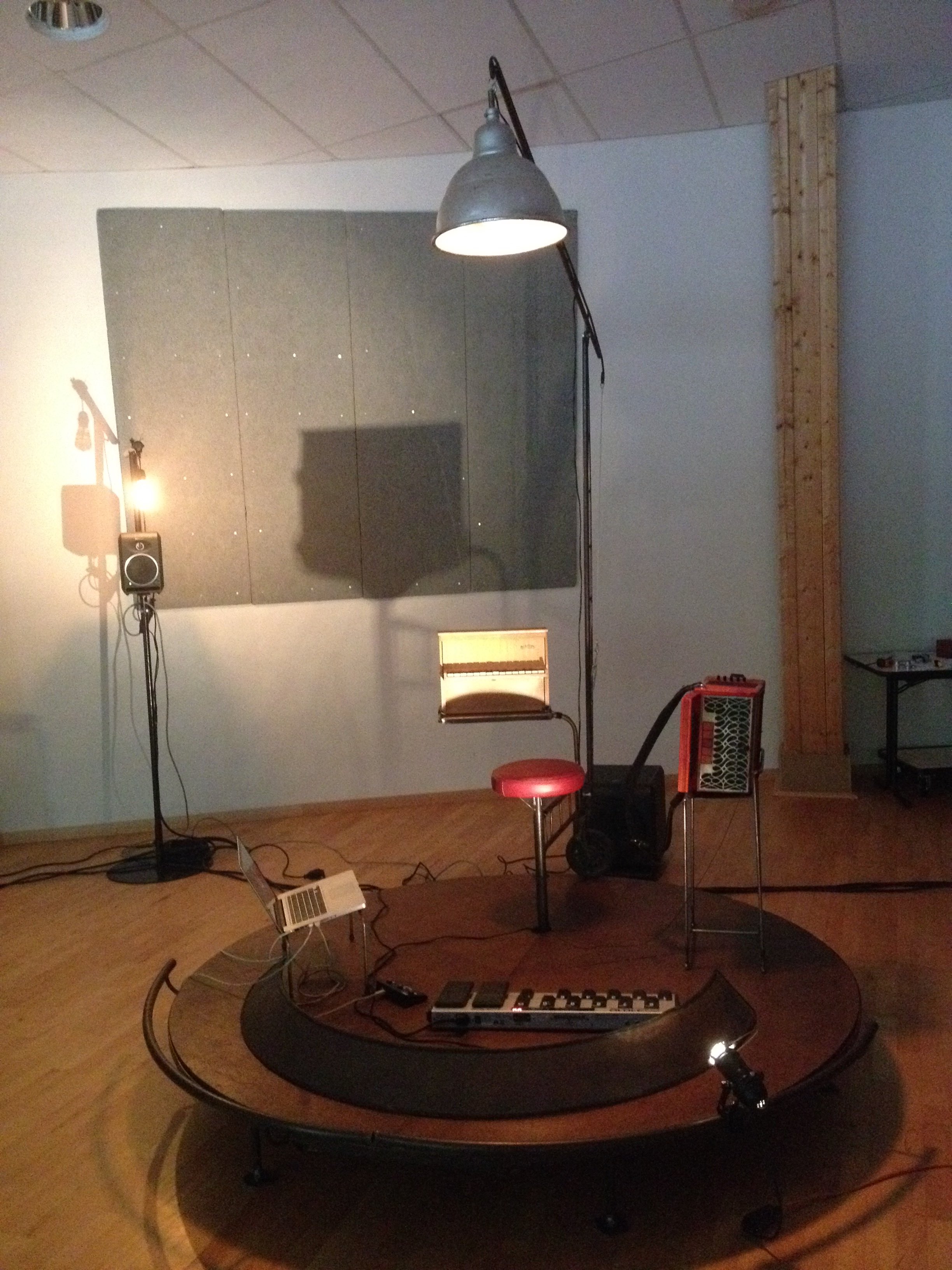 Je profite de plusieurs résidences au Logelloù et à Startijin pour peaufiner mon spectacle Dedans avec l'aide de Philippe Ollivier et Maud Guillois. C'est aussi l'occasion de prendre mes marques avec la scénographie de Guillaume Roudot.